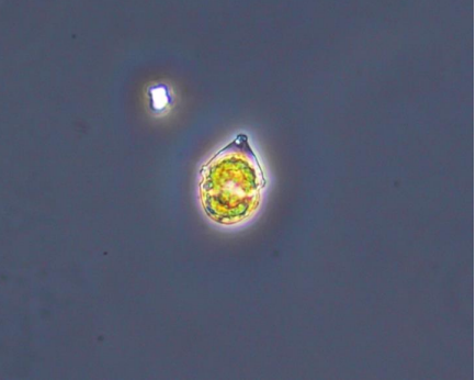 Scrippsiella spp. is a genus of pear-shaped, cosmopolitan dinoflagellates found in coastal temperate waters. They are able to form harmful algal blooms that lead to water discoloration. They are also efficient cyst producers, which act as a benthic reservoir of the vegetative population and contribute to the dinoflagellate’s success in a neritic environment.